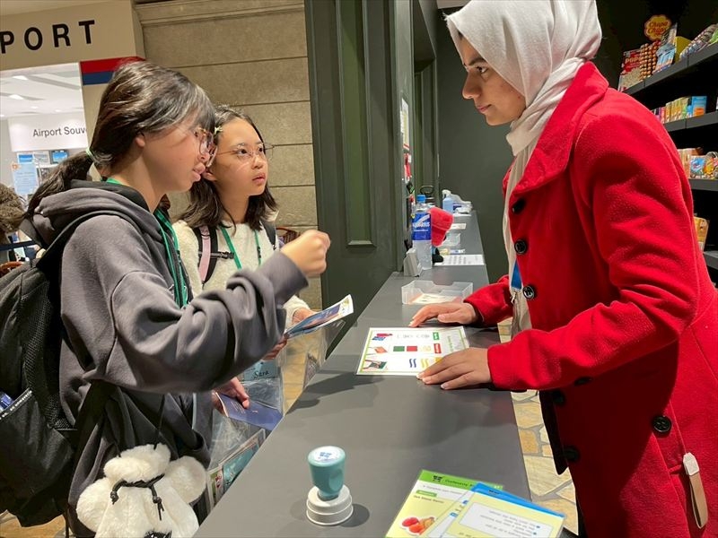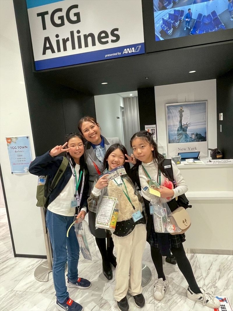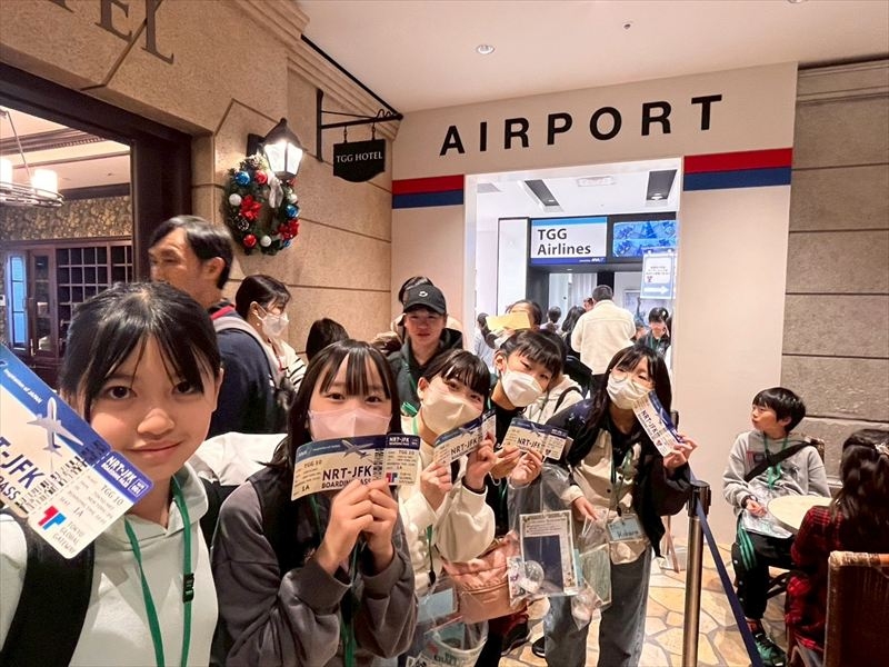 英語でのアナウンスややり取りに耳を傾け、「旅行しているみたい!」と、特別な体験を楽しんでいました。