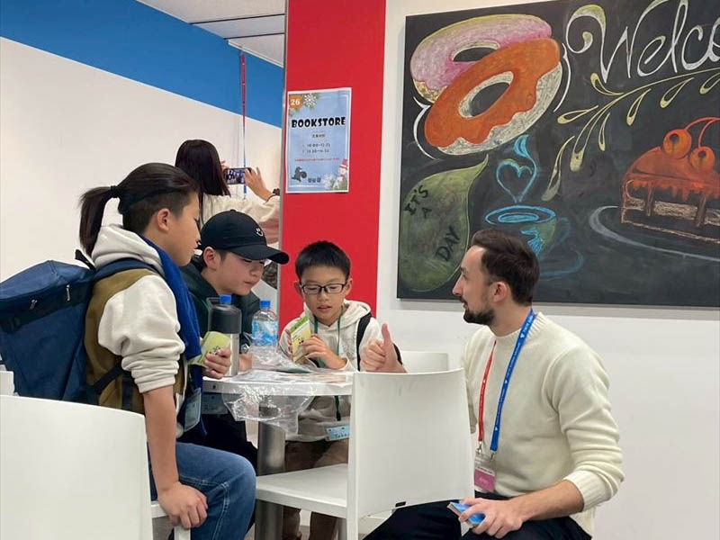 会場ではたくさんの外国人スタッフが笑顔で迎えてくれ、子どもたちの表情にも自然と笑みが広がります。
